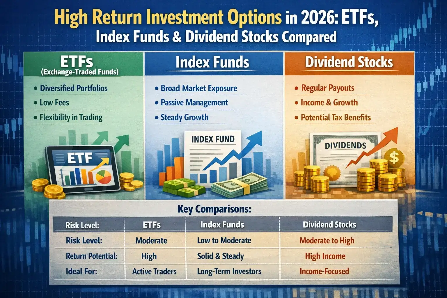 High Return Investment Options in 2026: ETFs, Index Funds & Dividend Stocks Compared